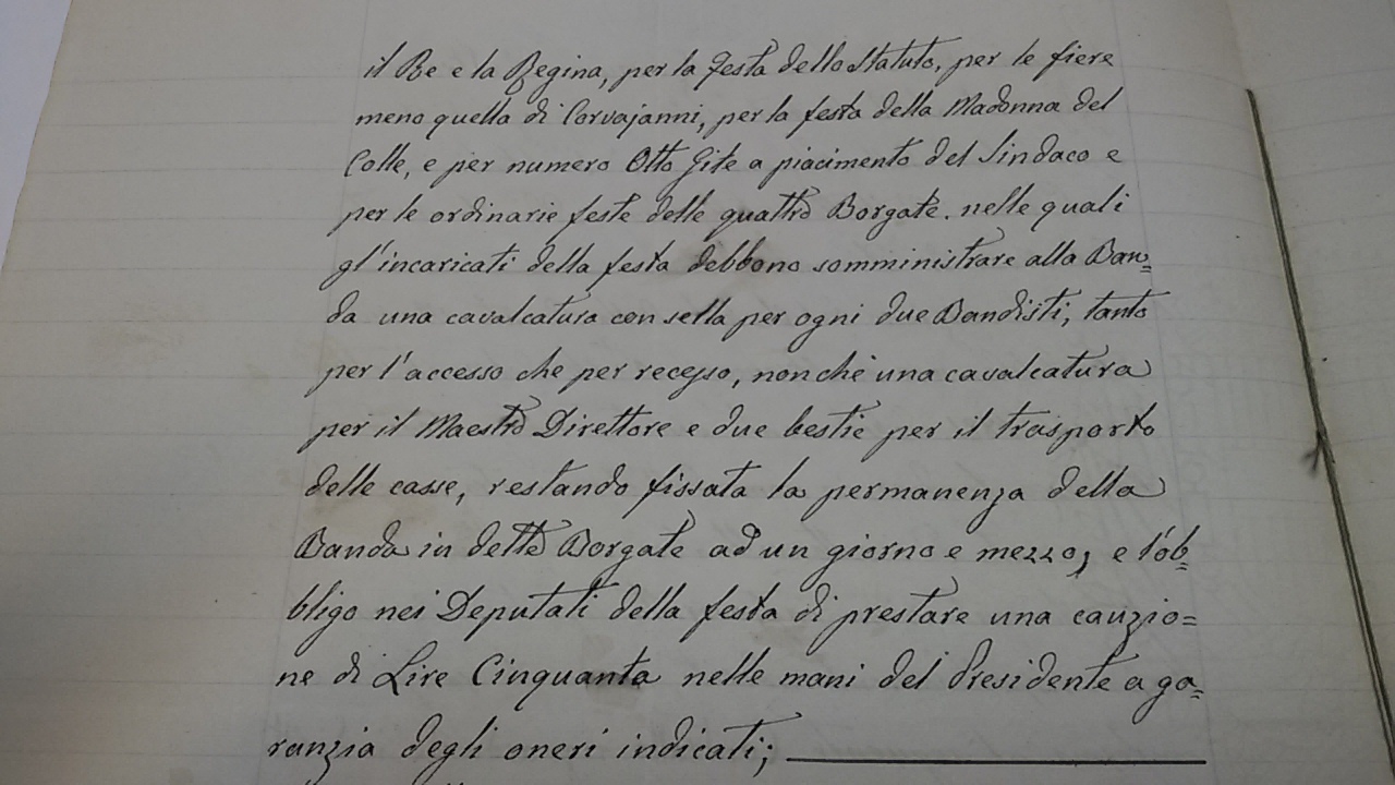 Essi consistono nel fornire i bandisti di vitto e alloggio per 1 giorno e mezzo, durata prevista per il servizio, e cavalcature necessarie per l’andata e per il ritorno.