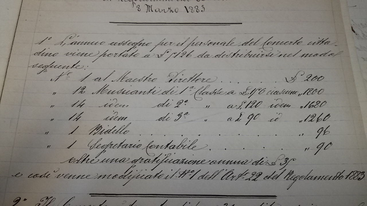 Uno dei temi più dibattuti, come è lecito supporre, è quello economico e un documento del 1883 ci mostra come vengono ripartite le quote finanziarie