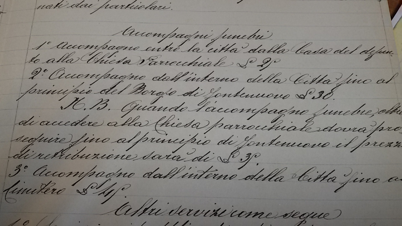 I servizi a pagamento offrono uno spaccato delle usanze della comunità stronconese, come quella di accompagnare messe, processioni e funerali con differente tariffa a seconda del luogo (distanza dal paese); del giorno( feriale o festivo); dell’ora( mattina o pomeriggio);