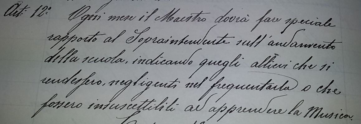 –L’ allievo dovrà presentarsi al Maestro di musica per essere inscritto nel registro che appositamente sarà aperto e dovrà giustificare ogni assenza.
