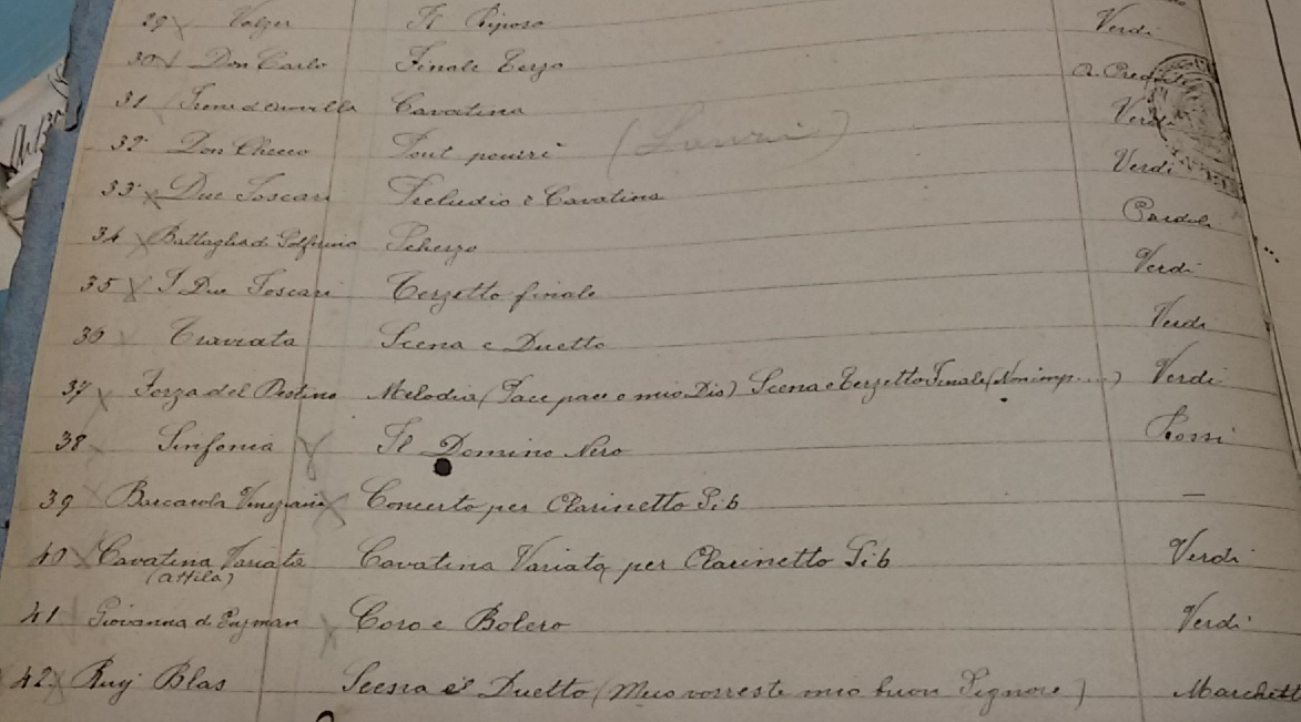 I grandi autori come Verdi, Rossini, Ponchielli, … con le loro opere più celebri si mischiano a operette, sinfonie e cori dai titoli e contenuti patriottici o frivolezze sociali.