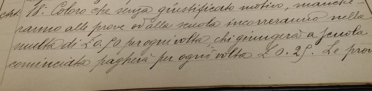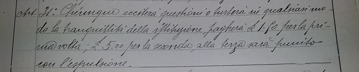 Sanzioni e multe in denaro, colpiscono chi ritarda alle prove, chi non esegue le parti assegnate, chi si assenta senza giustificato motivo, perfino chi si diletta nell’uso dello strumento senza autorizzazione del maestro…