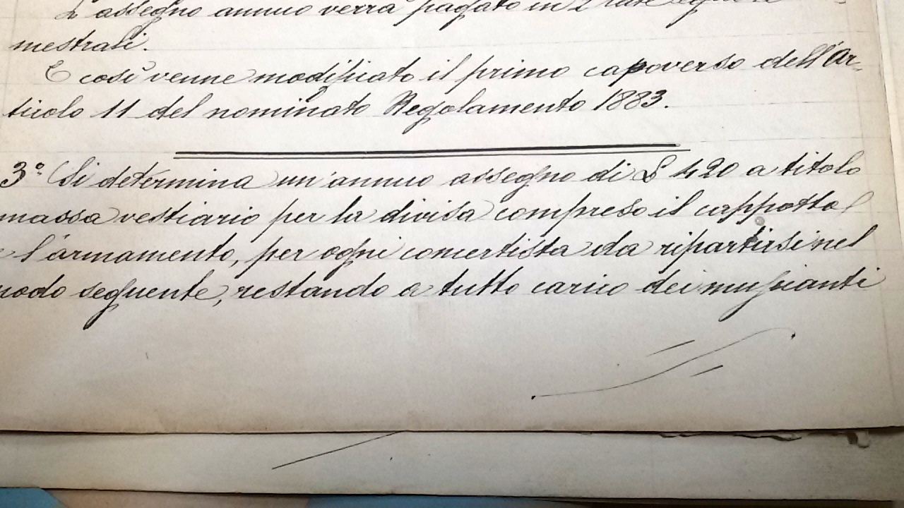 Già nel 1883, il Comune stanziava una somma da spendere per il vestiario ripartendola secondo i ruoli ricoperti dai vari componenti