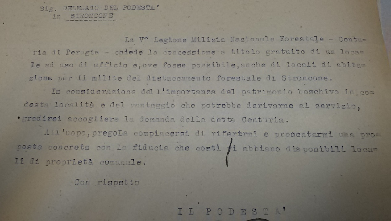 Nel 1927, la Milizia Nazionale forestale chiede a titolo gratuito un locale sia per l’ufficio che per abitazione di un distaccamento forestale.” In considerazione dell’importanza del patrimonio boschivo in codesta località e del vantaggio che potrebbe derivarne al servizio”.