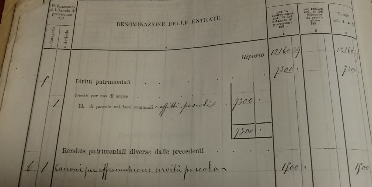 - Il Comune assegna anche il pascolo invernale che avviene nelle zone più basse, quasi collinari. Nel 1923 affitta l’erba della Costa e della bandita di Coppe, rispettivamente per £ 500 e £ 400, dopo regolare asta, partita a base 300, con offerte in aumento di £ 10 e un deposito di £ 30.