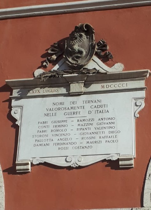 Quando nel 1849, fu proclamata la Repubblica romana, i ternani, accolsero Garibaldi come un Liberatore del popolo, gli dedicarono una lapide, ancora oggi, ben visibile nell’ex convento di San Valentino. Ottaviani nelle sue “Cronache di Terni”, descrive vari momenti storici in cui il patriottismo ternano si espresse in tutta la sua solennità.