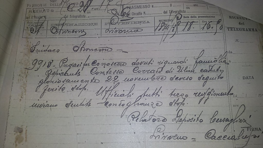 “60 morti e 16 dispersi, su una popolazione di 3900 abitanti”, giovani vite poco più che ventenni: pastori, artigiani e agricoltori. Il loro nome ora è inciso, come una lunga litania, su un ricordo marmoreo che, con il tempo, è diventato solo un arredo storico della piazza. I bambini che vi corrono intorno, le persone che lo citano come punto di riferimento e i proprietari di macchine parcheggiate che ci passano accanto , nell’indifferenza più assoluta… Il sentimento patriottico che, all’indomani dell’armistizio serpeggiò incessantemente per tutta la penisola, è finito nell’oblio del tempo.