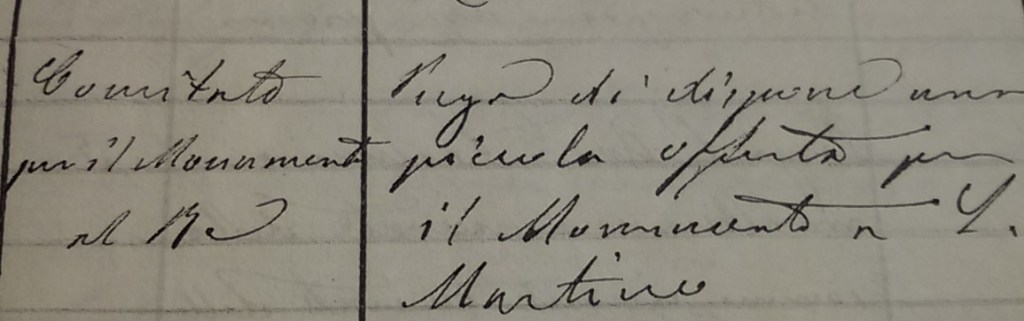 Nel 1880, tra le uscite in bilancio, compare un’offerta per il monumento al Re.