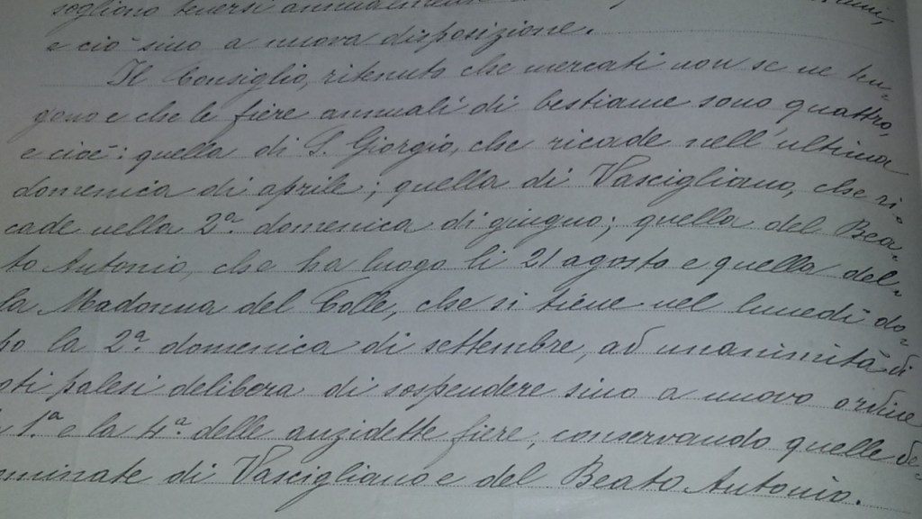 Nel 1918 un Decreto prefettizio ordinò la sospensione di metà delle fiere annuali del bestiame
