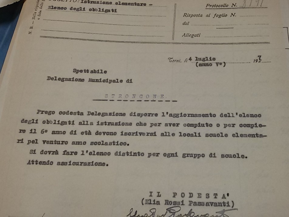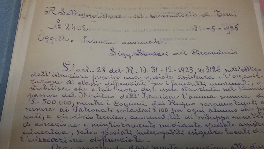 Il Comune rispose che: “ nel territorio di Stroncone, non ci sono bambini con sviluppo anormale“.