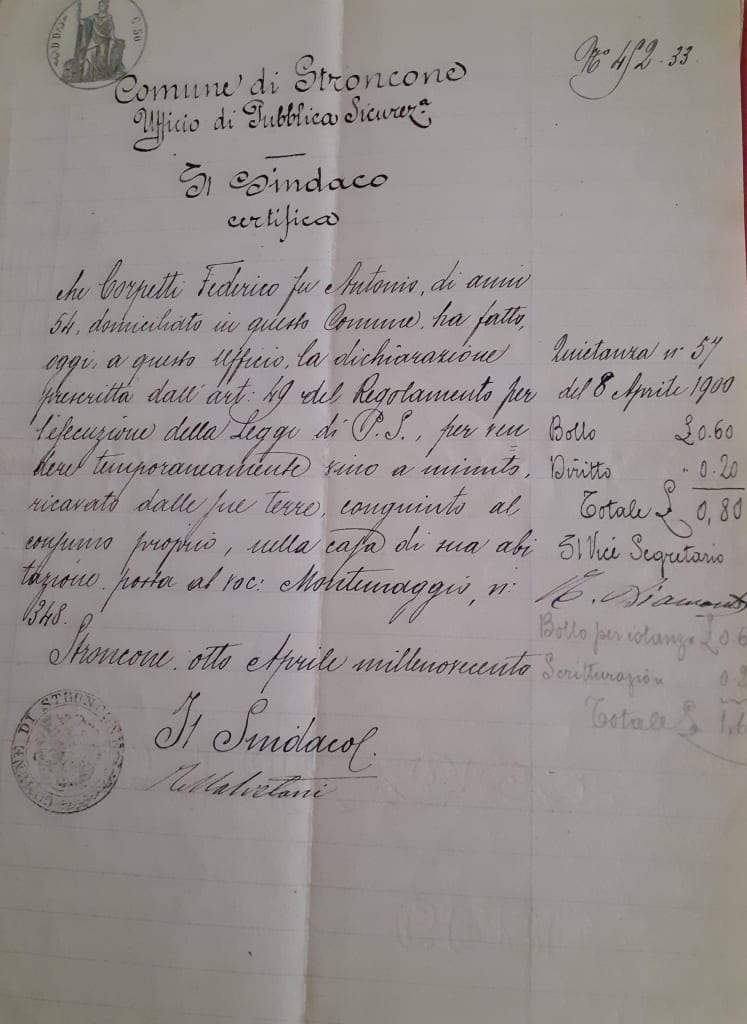 1922- N.Carlo di Benedetto, si presenta al Giudice Conciliatore di Stroncone per rivendicare la sua porzione di foglia di gelso situata nel terreno tenuto in affitto.
